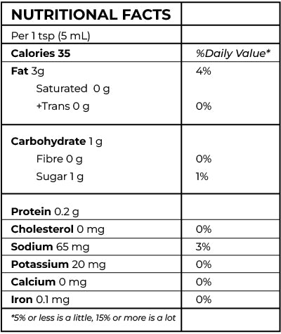 Our products are prepared and packaged in a registered food-safe facility that may handle dairy, nuts, seeds, grains, eggs, and soy. They come in 212ml glass jars and are proudly made in Canada.