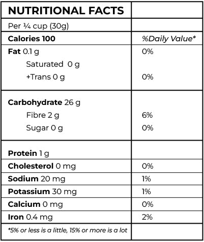 Our gluten-free dumpling flour comes in a 750g resealable package. Our products are prepared and packaged in a registered food-safe facility that may handle dairy, nuts, seeds, grains, eggs, and soy. Proudly made in Canada.